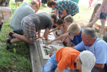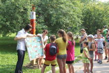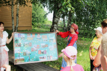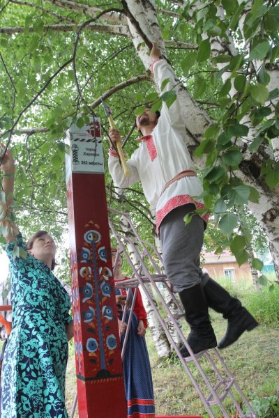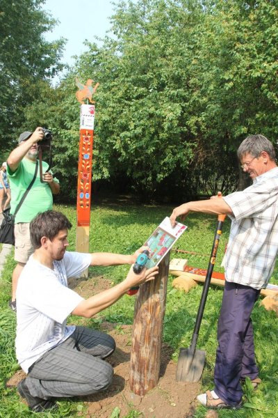 Время за игрой и интересными занятиями пролетело незаметно. И вот уже команда проекта в Тотьме устанавливает новый арт-объект: особенный, отличный от других.