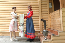 У порога местного музея дымился самовар, а хозяйка его, Сысоева Елена Сергеевна, встречала гостей хлебом-солью.