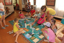 Пока взрослые под руководством народного мастера России Гладышевой Ольги Константиновны знакомились с отличиями свободно-кистевых и графических росписей, дети путешествовали в мир красоты с игровым кубиком в руках и ловко перемещали костяшки в попытке сложить изображения из отдельных фрагментов.