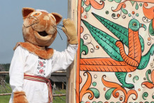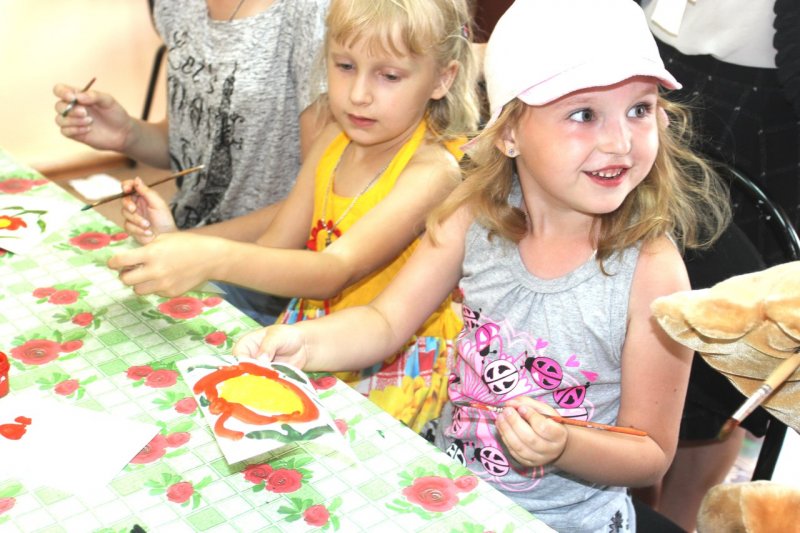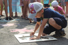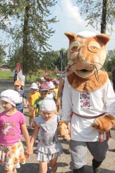 И вновь инициативу перехватил большой затейник Кот Семён. Он предложил всем сфотографироваться на память и, конечно, поиграть! В то время, пока народный мастер России Ольга Гладышева занималась с детьми и взрослыми изучением росписей, Кот развлекал дошколят. Ребята с большим усердием расцветили мелками асфальт. На одной из городских площадей вырос сказочный лес, в котором прячутся таинственные грифоны, отважные львы, фантастические сирины и кони. А чтобы им было не так одиноко, детвора нарисовала море солнышек, звёздочек, подселила к ним друга филина, а для пригляда за всем поставила Кота Семёна.