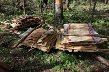 В начале июля «береста бежит». Так говорили крестьяне о времени, когда береста с лёгкостью отделяется от луба. В этой связи команда музея в соответствии с договорённостью с ООО «Вологодский лес» выдвинулась на заготовку материала. Музейщикам в распоряжение была выделена делянка в лесу, предназначенная под скорую вырубку. В течение дня мужчины занимались непривычным для себя делом: на уровне высоты поднятой руки делали вертикальный надрез ножом вниз и аккуратно снимали один пласт коры за другим. Лишь стоило приложить немного терпения и усилий, как широкая лента бересты оставалась в руках. Так удалось обеспечить музей материалом в достаточном количестве для ремонта кровель нескольких амбаров и проведения мастер-классов по берестоплетению на год вперёд.