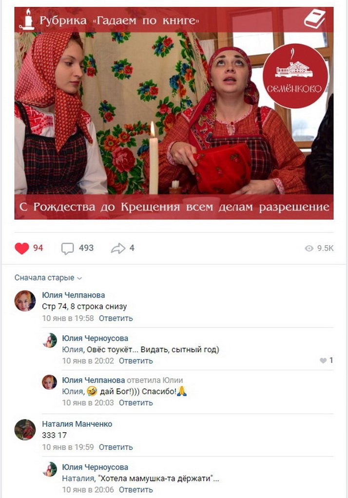 «С рождества до Крещения – всем делам разрешение»! Стоят страшные вечера. До Крещения осталось всего 2 дня. Дорогие друзья! У вас есть последняя возможность узнать о традициях святок на Русском Севере. Заказать программу «Святочные игрища» можно по телефону: 8172-21-01-90 или оставить электронную заявку. Программы принимаются до 18 января включительно.