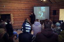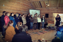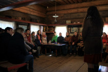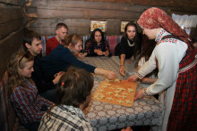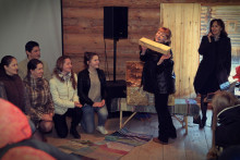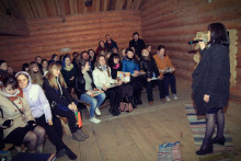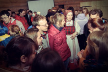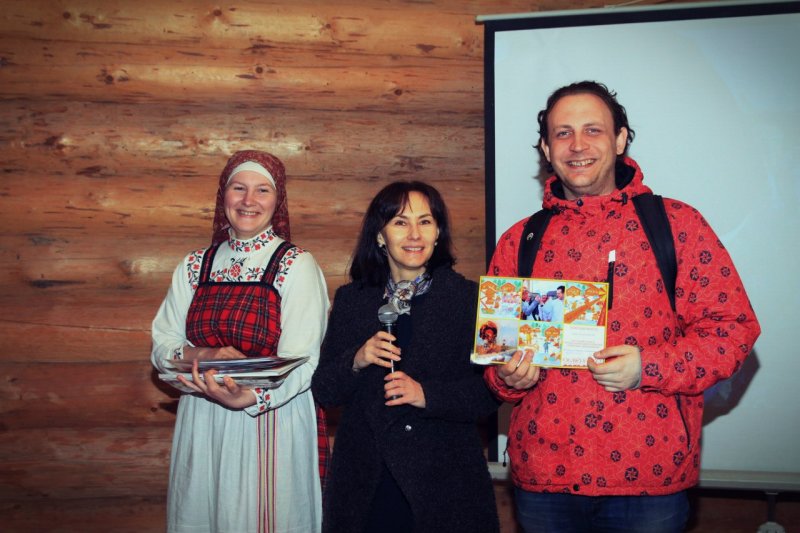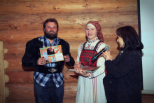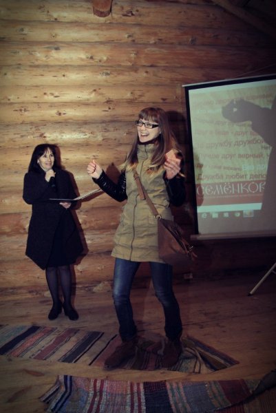 А после собрались на просторной повети дома Уланова, чтобы вспомнить масленицу и то, с каким упорством к ней готовились. Судите сами: за время подготовительного периода состоялось 16 репетиций. Это занятия по фольклору, сценической речи и даже по сценическому бою. Кадры кинохроники и фото-слайды напомнили о тех днях, вызвав чрезвычайное оживление собравшихся. В удивительной атмосфере всеобщего единения волонтёры получили благодарственные письма от музея "Семёнково". Радостно, что количество молодых и активных, преданных музею людей, за год выросло более, чем в два раза. Новичков посвятили в волонтёры музея "Семёнково" в соответствии с предусмотренным по такому случаю ритуалом, а старожилы были отмечены пластиковой картой Друга музея "Семёнково".