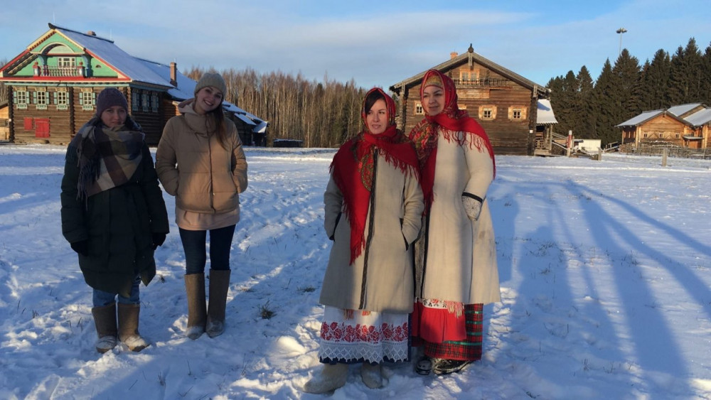 Современные энергичные женщины, сотрудницы компании, преобразились, переодевшись в традиционные северные костюмы, предоставленные музеем.
