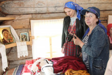 В рамках него прошла экскурсия по экспозиции "Основные занятия крестьян", которая познакомила слушателей Школы с полным циклом льнообработки: от посева и сбора льна до получения льняной кудели, затем нити, и заканчивая процессом производства домотканины.