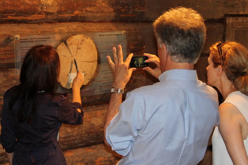 Генерального Консула США интересовали подробности и детали работы в рамках проекта «Сохраним русский дом на Русском Севере». Он внимательно  изучил «Календарь событий», матрицей для которого стал тонкий спил бревна, подвергнувшегося дендрохронологическому анализу. В необычной системе координат (система годичных колец) заиграли особым образом даты и события из истории государства Российского, истории освоения русскими американского континента и истории семьи крестьянина Василия Копылова.