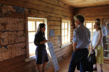 В летней избе перед гостями открылись одни за другими двустворчатые филёнчатые двери с плоской резьбой, расцвеченной масляными красками – большая редкость для деревни. Впрочем, как и обои в комнатах, над которыми в настоящее время колдуют исследователи и реставраторы. Господин Тёрнер не смог скрыть удивления и интереса к факту, что обои были оклеены поверх слоя старых рукописных  документов. Он согласился, что надо аккуратно и деликатно подойти к воссозданию обоев, чтобы правильно передать атмосферу прошлого.