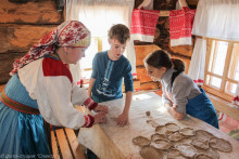 Гурманы остались под впечатлением от традиционной выпечки Тотемской земли. Ольга Николаевна Литвинова – руководитель центра народной культуры "Морошка" Тотемского музейного объединения удивляла всех сичениками с капустой и картофелем, саломатом, драчёной, блинами с луково-рыбным припеком. А семейная студия "Светица" учила желающих выпекать шаньги. Не случайно говорят: "Масленица - объедуха, обжируха, деньгам приберуха".