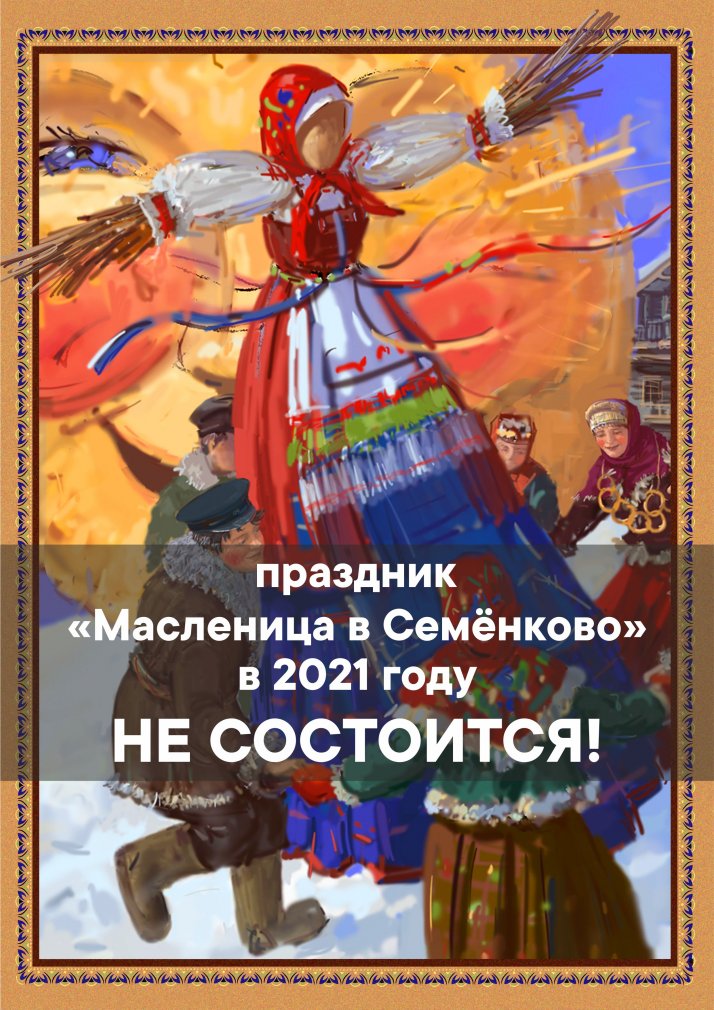В соответствии с действующим режимом повышенной готовности (постановление Правительства Вологодской области № 213 от 26 февраля 2021 года) сохраняется запрет на проведение массовых мероприятий на территории области.В этой связи мы сообщаем, что в 2021 году праздник "Масленица в Семёнково" не состоится.