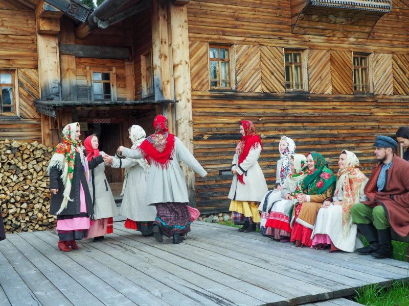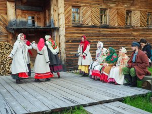Не обошлось и в этот раз без весёлых песен, игр да плясок. А после в музейных домах про "пережинщика" слушали, макет амбара собирали, валеночки катали.
