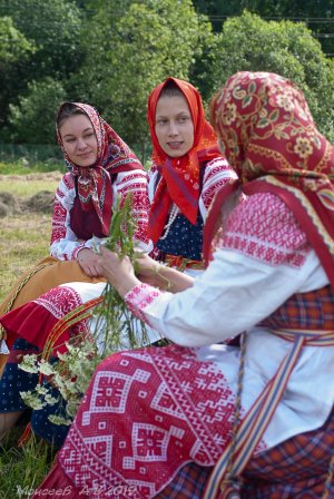Катя рассказывает:«Коллега по работе предложила «поступить» в открывающуюся «Школу музейной интерпретации» музея «Семенково», я не раздумывая согласилась, хотя раньше темой традиционной культуры не увлекалась, но нисколько не пожалела. Из лекций, практических занятий я узнала много нового о вологодских крестьянах XIX – начала ХХ века, а полученные ранее навыки из театральных студий, позволили более проникновенно отыгрывать роли и быть более открытой и раскрепощенной на программах музея. Я участвую в небольших зарисовках крестьянской жизни. Мне удалось освоить более десятка ролей от молодой девушки, мечтающей о парне, до больной бабы, для которой путь в больницу – вопрос жизни и смерти. В процессе работы в музее я получила больше, чем просто удовлетворение потребности в выступлениях. Что именно? Самое важное, на мой взгляд, – это любовь и уважение к родной культуре и традициям наших предков. Во-вторых, это люди: отрытые, отзывчивые, добродушные и заботливые, в такой компании очень приятно проводить время. Ну и третье – это стимулирование самосовершенствования, освоения новых знаний и форм работы».