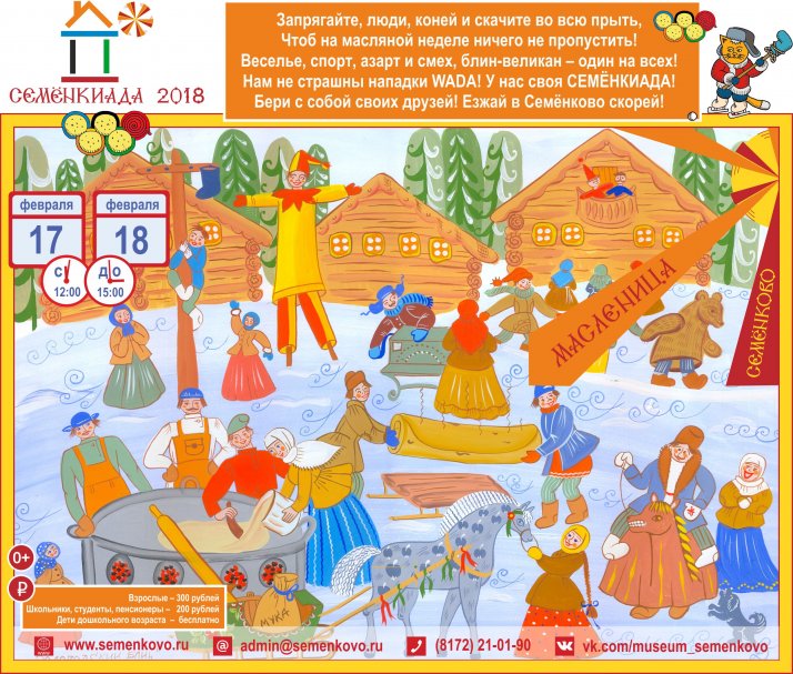 Друзья! Если вы полны решимости проводить масленицу с огоньком и задором в "Семёнково", но при этом не желаете терять драгоценные минуты, простаивая в очереди за билетами на входе в музей в день праздника, то эта новость для вас! Открыта предварительная продажа билетов!