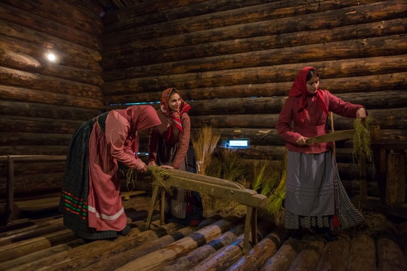 Повезло «деревне Семёнково» - теперь у нас целых две мельницы! И обе работают, зерно в муку перемалывают – на всю округу стук стоит. Досталась и гостям работа: крылья мельницы крутить помогали да муку мололи. А потом лён с девушками трепали, пряжу чесали, дожинки справляли, сноп-«пожинальницу» наряжали, на молодёжной бесёде пели да плясали. Из бересты плели, куклу-крупеничку вязали, да ткацкий стан заправляли.Хоть и не порадовала погода тёплым солнышком, отогрелись гости добрым словом, понаслушались «долгих» песен.