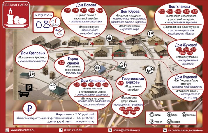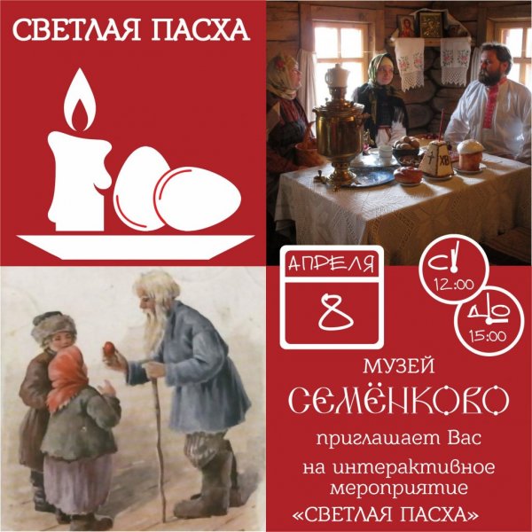 8 апреля просияют небеса, и все православные верующие отметят «праздник праздников, торжество из торжеств» - Светлую Пасху! Музей "Семенково" приглашает всех разделить с нами радость этого дня, прикоснуться к народным традициям и ощутить полноту жизни!