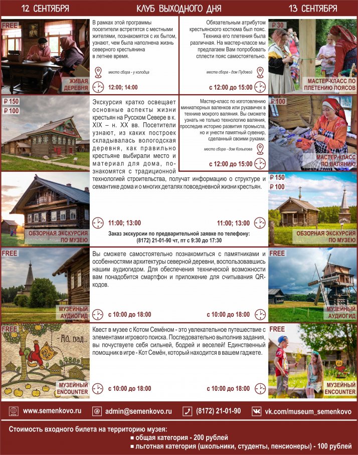 Программа "Клуба выходного дня" на 12 и 13 сентября 2020 года