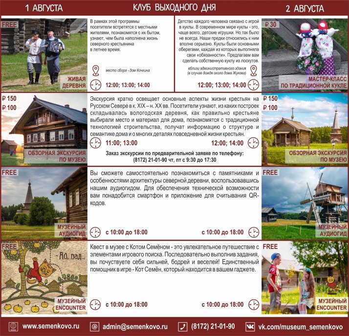 Программа "Клуба выходного дня" на 1 и 2 августа 2020 года