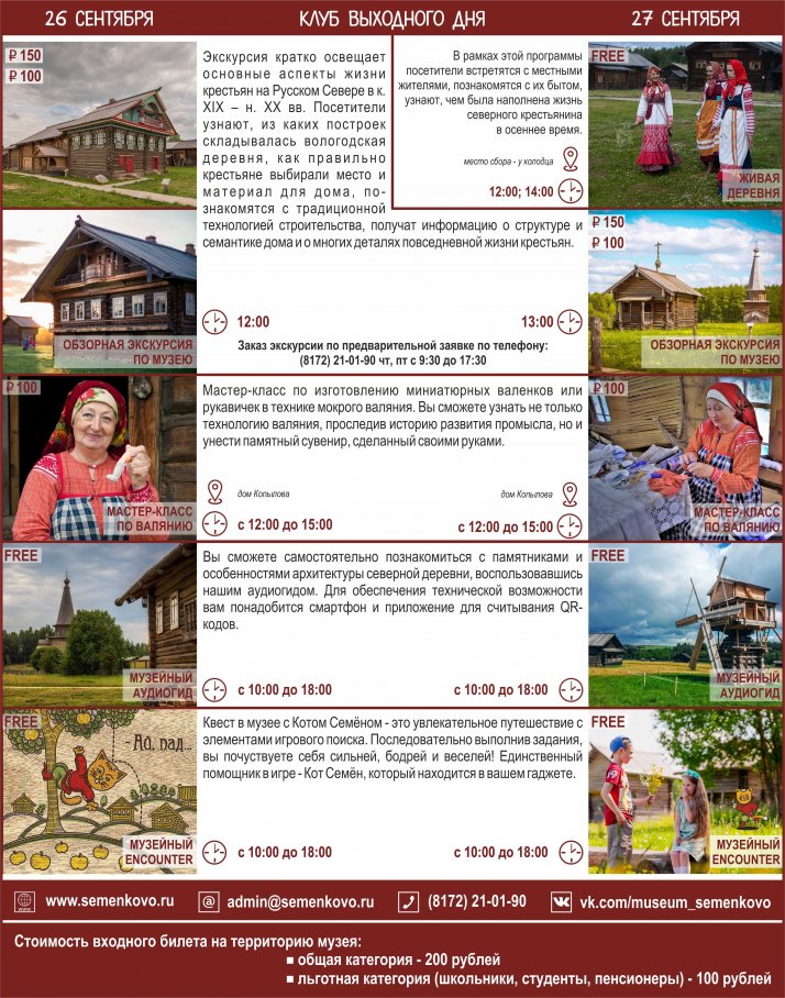 Программа "Клуба выходного дня" на 26 и 27 сентября 2020 года