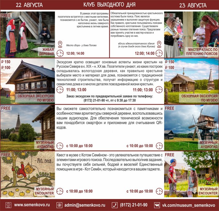 Программа "Клуба выходного дня" на 22 и 23 августа 2020 года