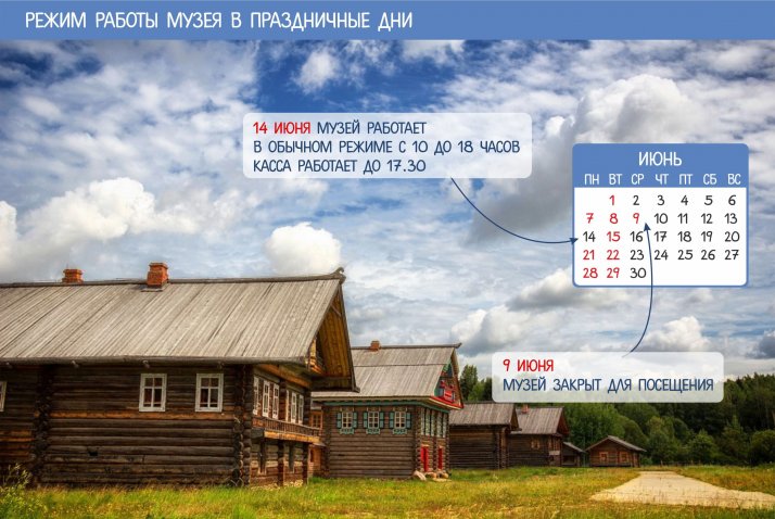Дорогие друзья! Музей "Семёнково" поздравляет вас с наступающими праздниками и информирует о графике работы Музея в июньские праздничные дни.