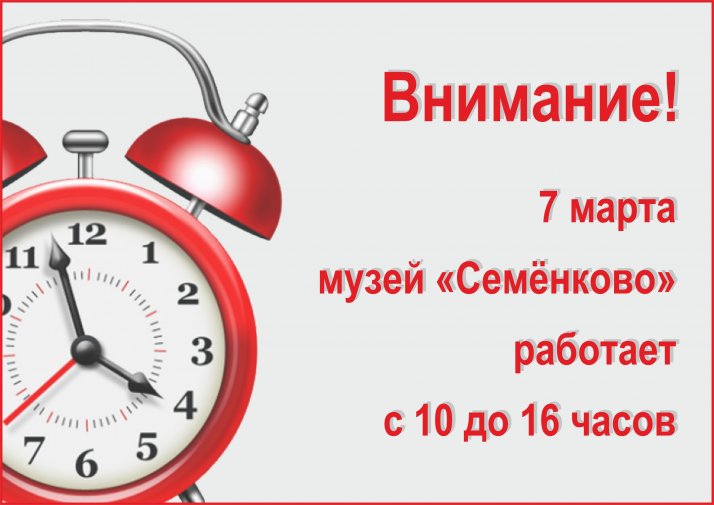 7 марта - музей работает с 10 до 16 часов.