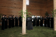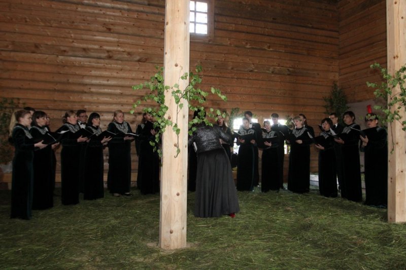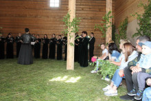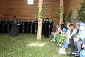 Кому-то посчастливилось оказаться на выступлении Хоровой академической капеллы им. В.М. Сергеева. В уютном полумраке Георгиевской церкви, украшенной свежескошенной травой и зеленью молодых берёз, рождалось и бархатом разливалось сочное многоголосье. Оно то нарастало, то стихало, прокрадываясь в сердца и души слушателей, волнуя их и возвышая над обыденностью.