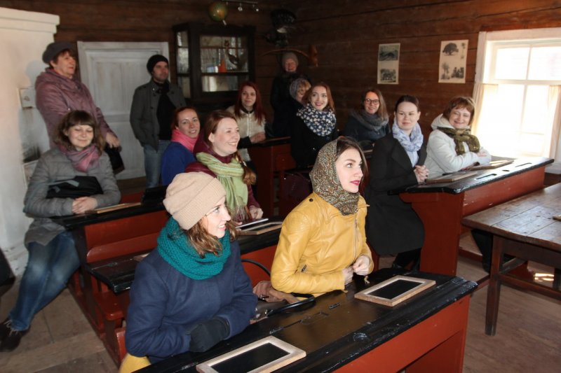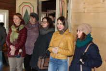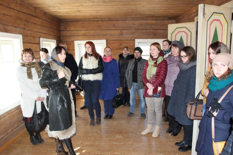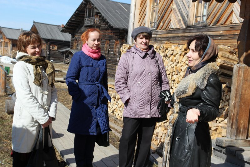 Для многих, из приехавших на методическую учёбу, это было первое знакомство с музеем «Семёнково». Наталья Киршина поведала о единственном на территории Вологодской области музее под открытым небом, истории его формирования, проблемах развития и ближайших перспективных планах. Особое внимание было заострено на результатах проекта «Строим вместе!» - прекрасном примере взаимодействия с бизнесом, итогом которого стала спасённая ветряная мельница из деревни Борок Тотемского района и строящаяся поблизости от неё ещё одна аэродинамическая конструкция. Гости посетили «Общественную квартиру», посидели за партами в «Сельской школе». Не обошли вниманием и дом Копылова из деревни Коростелёво. Такой выбор маршрута не случаен. Именно к этим объектам последнее время было приковано пристальное внимание общественности и научного сообщества в связи с реализацией крупных проектов «Мы, собравшись, постановили...» и «Сохраним русский дом на Русском Севере».