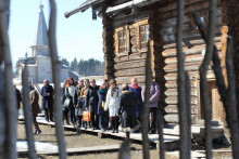 8 апреля в заключительный день работы Школы музейного мастерства музей «Семёнково» приветствовал гостей ярким весенним солнцем. На фоне прозрачной небесной лазури отлично читались силуэты деревянных построек. Музейные дома, как солдаты, выстроившиеся на парад, щеголяли деревянной резьбой, точёным балясником, предъявляя мощь строительной традиции, а их отражения купались в лужах талой воды, забавляя посетителей.