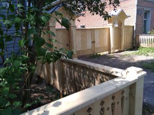 Сказано-сделано! В мае - июне силами сотрудников отдела по реставрации памятников деревянного зодчества были осуществлены работы по устройству нового забора и палисадника.