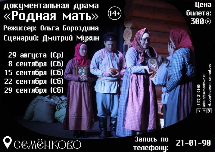 Друзья! Знакомьтесь с театральной афишей музея «Семёнково» на сентябрь 2018 года.