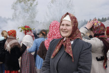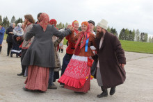 Парни вместе с гостями деревню обошли, яиц насобирали, а затем на большой сковороде яичную селянку приготовили. Уж так повелось, что Троица в исторической деревне «Семенково» всех собирает за единым столом, за братчиной.