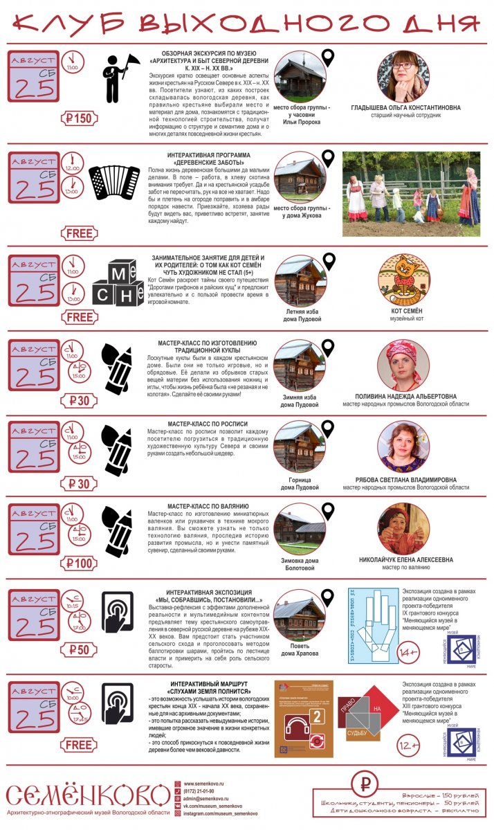 Программа "Клуба выходного дня" на 25 августа 2018 года