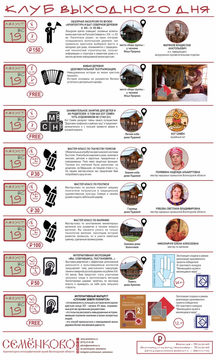 Программа "Клуба выходного дня" на 19 августа 2018 года