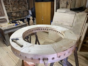 Вот и сейчас в музее продолжается работа по реконструкции необычного механизма шатровой мельницы из деревни Старое село Вологодского района. Силуэт постройки уже частично вырисовался.
