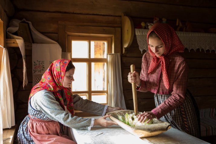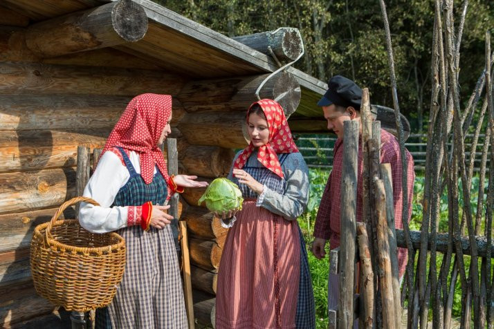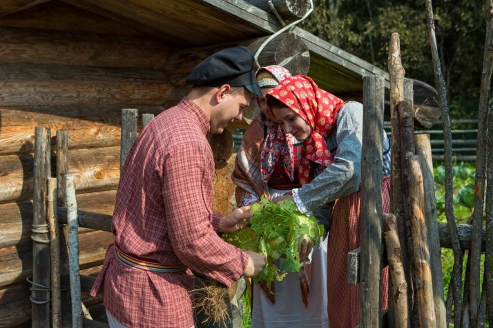 В программе: знакомство с традицией помочей на Русском Севере, угощение пареной репой, участие в коллективных видах работ (рубка, засолка капусты, колка дров, укладывание поленницы), подвижные игры.