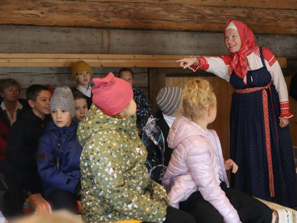В программе: знакомство с обрядом «дожинки», участие в ритуале «завивания бороды», внос в избу последнего снопа, разучивание шуточных приговоров и причетов на похороны мух, вырезание гробиков из картофеля, «похороны» мух.
