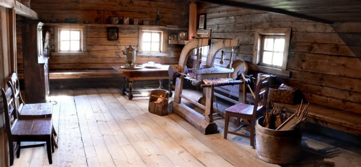 “You sow the flax and you reap the wealth,” they used to say in the old northern villages. Flax had been dressing the entire family. After the harvest, the handy housewives would start to process flax: slave it, comb it, and spin it. They would bring weaver looms in and hand-weave, watching carefully after each thread, so that neither one would be torn apart or kinked, or fall under the bench. The interior of the house tells about the traditional methods of flax working and accompanying it ceremonies.