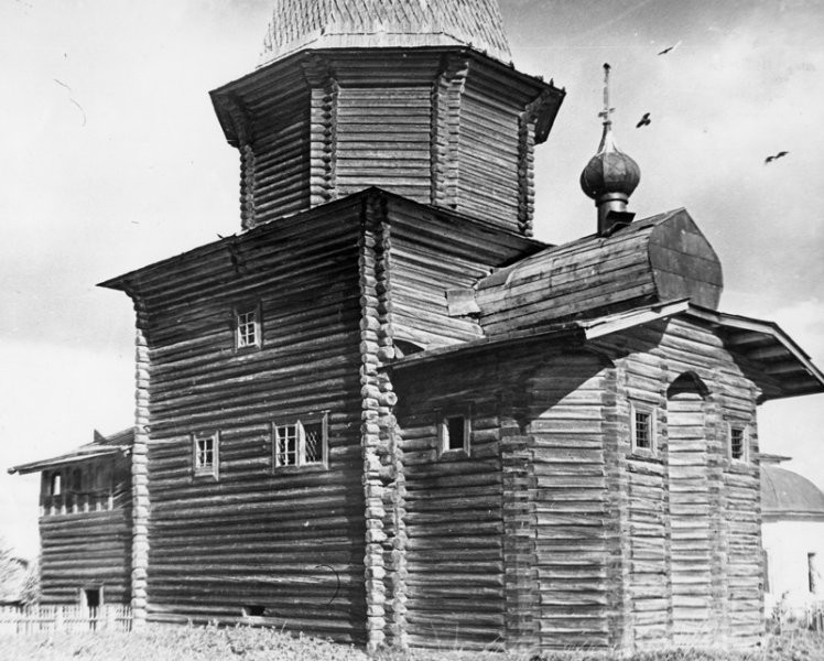 Шатровый деревянный холодный Георгиевский храм был построен в кон. XVII-нач. XVIII вв., «на месте старой деревянной церкви 1588 года постройки, расположенной в верховье реки Уфтюги».