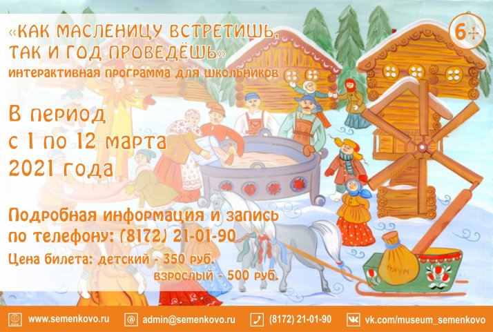 Музей «Семёнково» приглашает школьников на интерактивную программу «Как масленицу встретишь, так и год проведешь!»