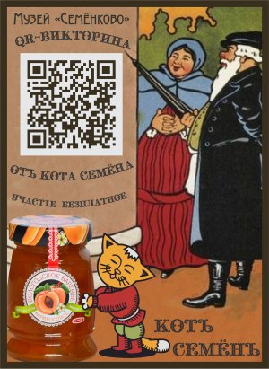 Друзья! Вы ещё не забыли, что наш музейный Кот Семён имеет уникальный отпечаток лапы? Он повсюду оставляет следы в виде qr-кода. Ему нравится загадывать загадки и играть с отзывчивыми посетителями. Во время праздника «Масленица в Семёнково» кот не на шутку разошёлся и оставил для гостей целое послание. Лишь избранные, самые упорные и предприимчивые сумели расшифровать его: «Весь мир - театр. В нём женщины, мужчины - все актёры»!