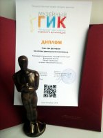Диплом обладателя Гран-при I Интренет-фестиваля музейного мультимедиа «Музейный гик» наконец прибыл в Вологду!