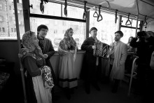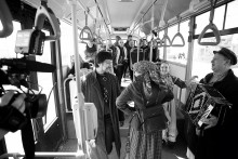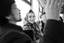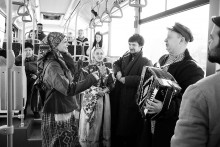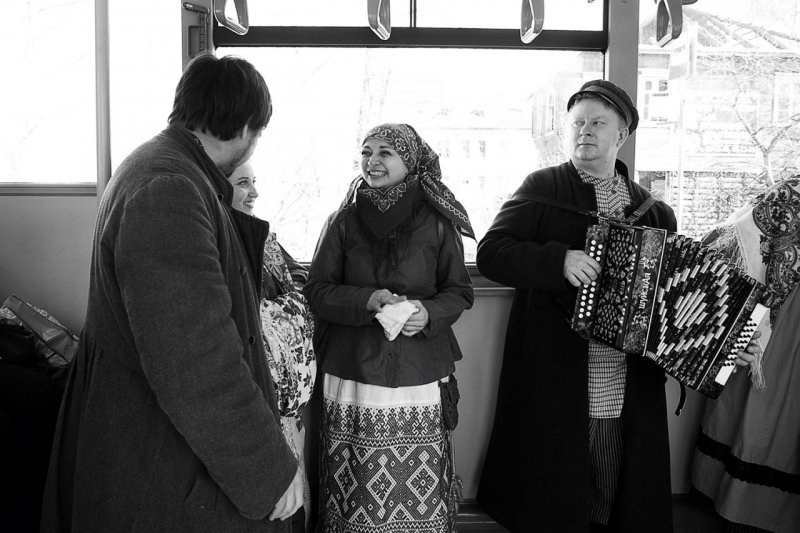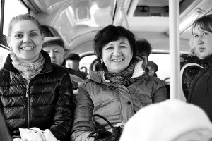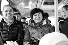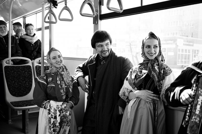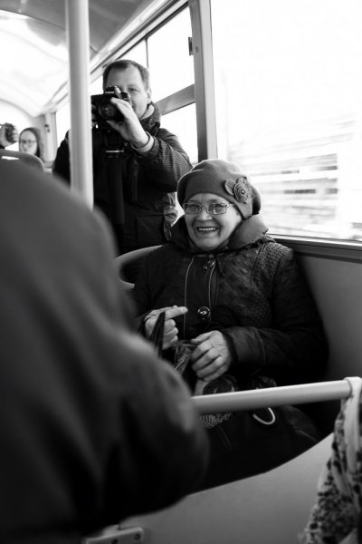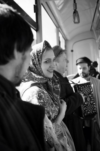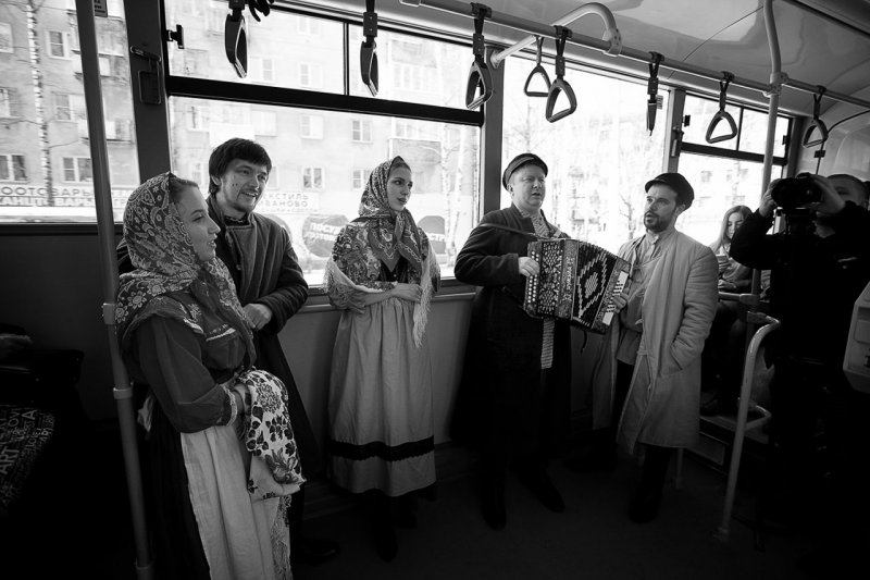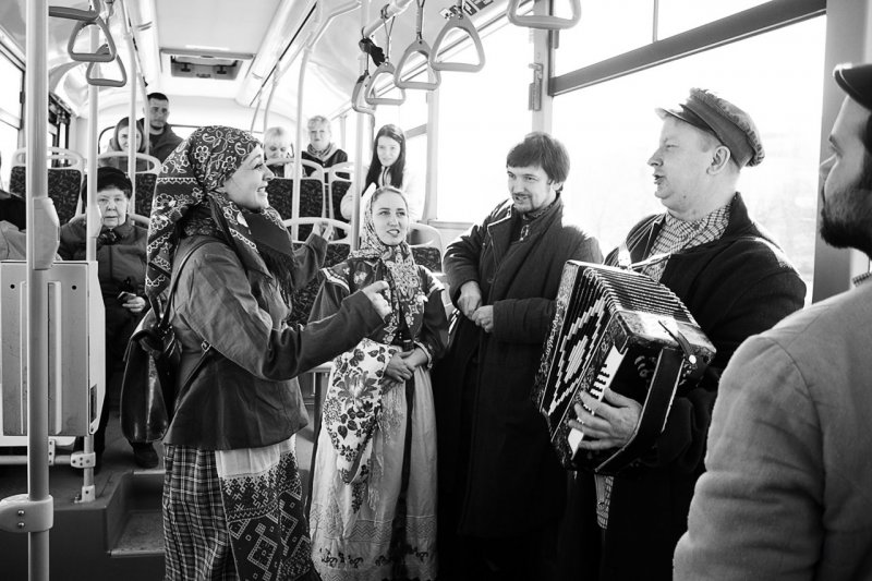 "…Да и могут ли фото рассказать о той атмосфере, что царила в автобусе. Когда весь автобус подпевал ребятам, прихлопывая в ладоши в такт. Кто-то даже выходил плясать! А одна сударыня просто не стала выходить на своей остановке, сказав: "Поеду с вами кататься!". А другая, взяв меня за руку, просила: " Девушка, я тоже частушки знаю, можно спою?" – Галина Смирнова.