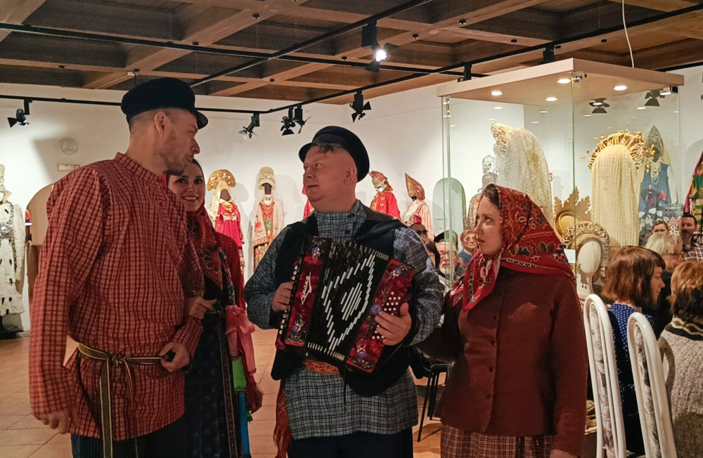 На исходе морозная зима, и она не торопится уходить. По народным представлениям её следует должным образом проводить. И тут в залах художественного отдела послышалась гармонь, зазвучали звонкие голоса, которые перенесли собравшихся в русскую деревню. Молодёжь в эту пору по дворам ходит, «виники-опарыши, голики- омётыши» на масленичный костёр собирает. Вот уж и чучело масленицы готово. Её, Масленицу дорогую, «Дуню белую, Дуню румяную», чествовали, величали, на двор широкой зазывали... Ожившие сцены из жизни деревни задали тон встрече, послужили своеобразной иллюстрацией к книге.