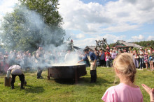 А какой народный праздник без братчины? За общим столом и беседа спорится, и люди становятся ближе и родней друг другу. Вот и старались музейщики заодно с гостями успеть к ней пироги напечь, яйца выкрасить в молодой траве, яичню-селянку на большой сковороде приготовить… Завершилось гуляние общими хороводами вокруг берёзкки, поцелуйными играми, народными забавами!