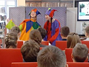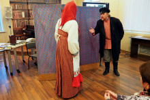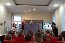 Сотрудники музея «Семёнково» разыграли перед зрителями остроумную интермедию "Как в Вологде удумали масло бить?!" Яркая и поучительная история в лицах и красках развернулась в стенах библиотеки. Было там место и народному любимцу Петрушке и невесте его и другим свидетелям и участникам тех далёких событий, когда в деревню пришла кооперация, стали появляться маслозаводы, и на корову мужик вдруг взглянул другими глазами, как на кормилицу.