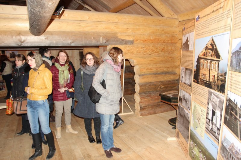 Для многих, из приехавших на методическую учёбу, это было первое знакомство с музеем «Семёнково». Наталья Киршина поведала о единственном на территории Вологодской области музее под открытым небом, истории его формирования, проблемах развития и ближайших перспективных планах. Особое внимание было заострено на результатах проекта «Строим вместе!» - прекрасном примере взаимодействия с бизнесом, итогом которого стала спасённая ветряная мельница из деревни Борок Тотемского района и строящаяся поблизости от неё ещё одна аэродинамическая конструкция. Гости посетили «Общественную квартиру», посидели за партами в «Сельской школе». Не обошли вниманием и дом Копылова из деревни Коростелёво.