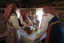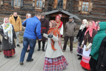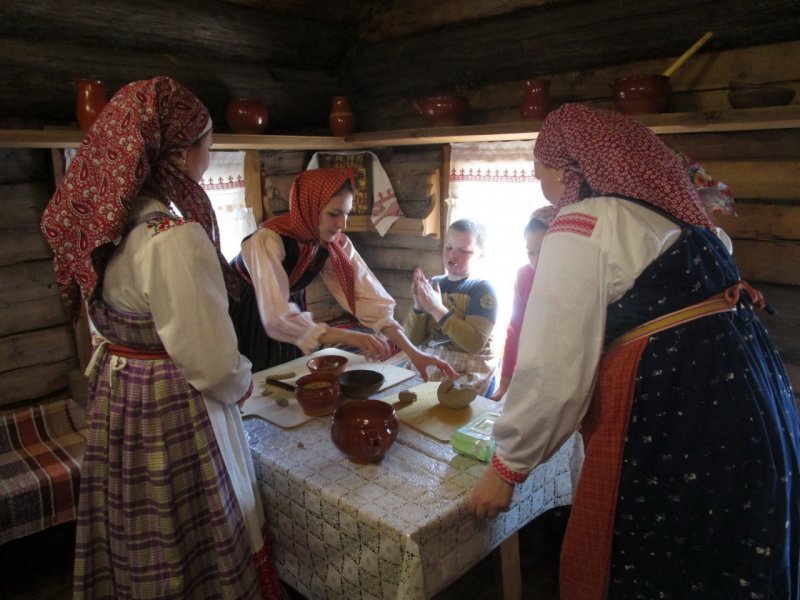 Музейная деревня наполнилась жизнью. Отовсюду доносились заливистые голоса. Кто-то весело качался на качелях. Детвора с азартом катала яйца по желобкам, а молодёжка без устали пела и плясала. Погода не радовала с утра, и время от времени хотелось укрыться в тёплой избе.