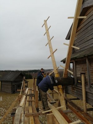 На данном этапе принято решение сделать составные спицы, что позволит более оперативно решать возникающие проблемы в будущем», - прокомментировал работы начальник отдела реставрации памятников деревянного зодчества Степан Анкудинов.