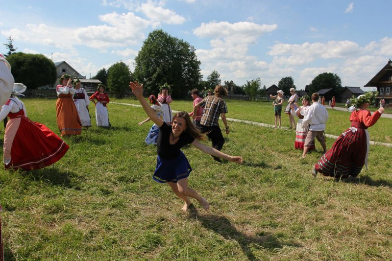 С самого утра деревня Семенково зажила приготовлениями к светлому празднику Троицы: девушки украшали дома веточками березы, наряжали лентами, парни готовили игры и увеселения для гостей, а бабоньки и мужики ставили братчину - топили самовар, варили яйца, делали угощение на всю деревню.