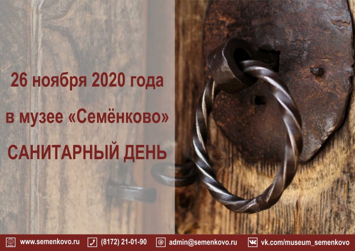26 ноября (ЧЕТВЕРГ) Музей "Семёнково" будет закрыт на Санитарный день.