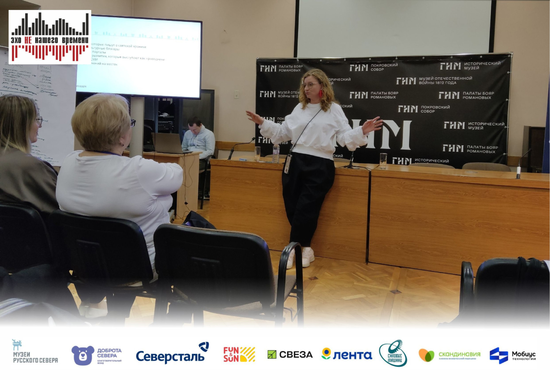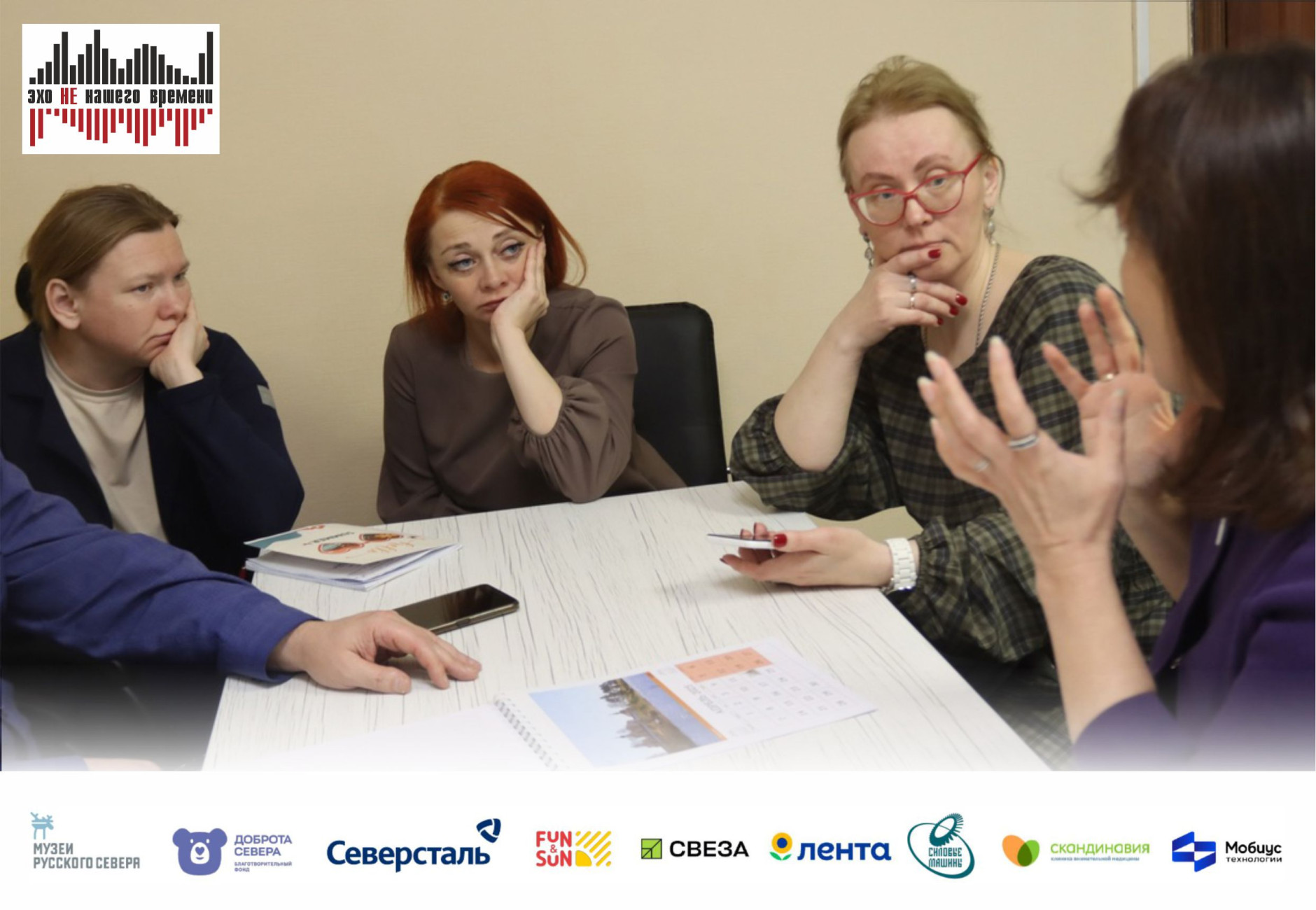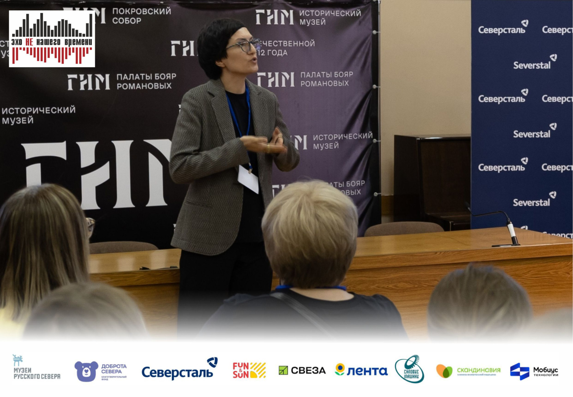 Проект «Эхо НЕ нашего времени» - победитель XV грантового конкурса программы «Музеи Русского Севера» Благотворительного фонда «Доброта Севера» при поддержке компании «Северсталь», компаний-партнеров: «Силовые машины», «Лента», «Скандинавия», «Свеза», FUN&SUN , а также при участии проектной команды и экспертной поддержке «Мобиус Технологии» и «Северсталь-инфоком».